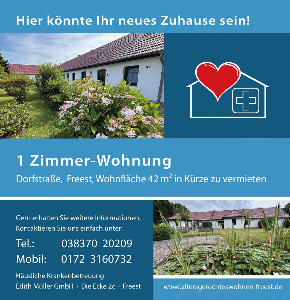 Ein Zuhause im schönen Fischerdorf Freest mit einem herzlichen Miteinander und Verantwortung für Menschen. Das liegt uns seit unserer Gründung im Jahr 1995 am Herzen. Genießen Sie Ihre dritte Lebensphase selbstständig oder mit individuell auf Sie angepasste Pflege in Gemeinschaft im Betreuten Wohnen in angenehmer Atmosphäre.